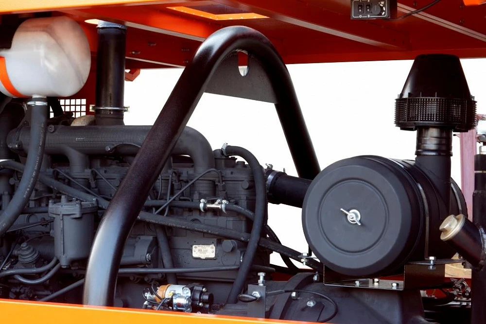 Система управления • Ударопрочный приборный щит, рассчитаный на работу при экстремально низких и высоких температурах, в условиях резких перепадах и повышенной влажности. • Интуитивно понятные средства управления и индикации. • Датчики аварийной защиты: 1 – минимального давления масла дизеля, 2 – перегрева дизеля, 3 – перегрева компрессора • Указатель уровня топлива, контрольная лампа заряда АКБ, кнопка предпускового подогрева, манометр давления. • Защита электрических цепей предохранителями. |